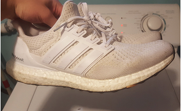 Ultra BOOST Triple White 比其他配色遠遠難入手,所以大家都很愛惜的穿,但也難防 BOOST 變黃這個天然定律。Reddit 鞋痴 Clearlylazy 最近就把安全還原 Ultra BOOST Triple White 的方法 Step By Step 公諸同好,過程出其地簡單,效果亦意外地理想,清潔後球鞋無破損回復無菌白,很值得參考。 首先他把球鞋弄濕,並以 GOJO 為清潔液。GOJO 是種專為敏感皮膚而設的洗手液,特性溫和,大家可以性質相似的產品代替。他以纖幼衣物比喻 Primeknit,不可粗暴對待,示範時只塗上 GOJO,待之後放入洗衣機時清理;作為鞋底,BOOST 相對受力,可以用力刷至潔白;Cage 則要用柔力與抹手紙刷,以免弄花表面,尤其 “ultra boost” 字體要 Handle With Extra Care;他建議手洗鞋帶,因為洗衣機會令它變形。 最後的工序就交給洗衣機,他用 Tide Pods 洗衣粉,調校普通清洗,若洗衣機屬粗暴型就以枕頭套包著洗,敢冒險的可加入漂白劑。他叮囑各位洗完緊記陰乾球鞋,萬萬不能曬與熱風對待。相當感激 Clearlylazy 的冒險精神,敢拿神鞋做實驗,並無私跟大家分享成果。